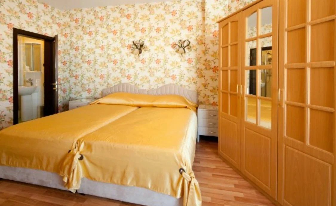 - Мебель: диван раскладной, зеркало, комод, кровать двуспальная, прикроватные тумбочки, столик журнальный, стул, шкаф